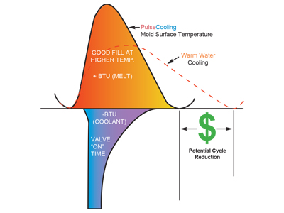 PulseCooling Controllers process information and commands a fast responding coolant valve to supply a calculated pulse of coolant during each cycle for maximum heat removal.